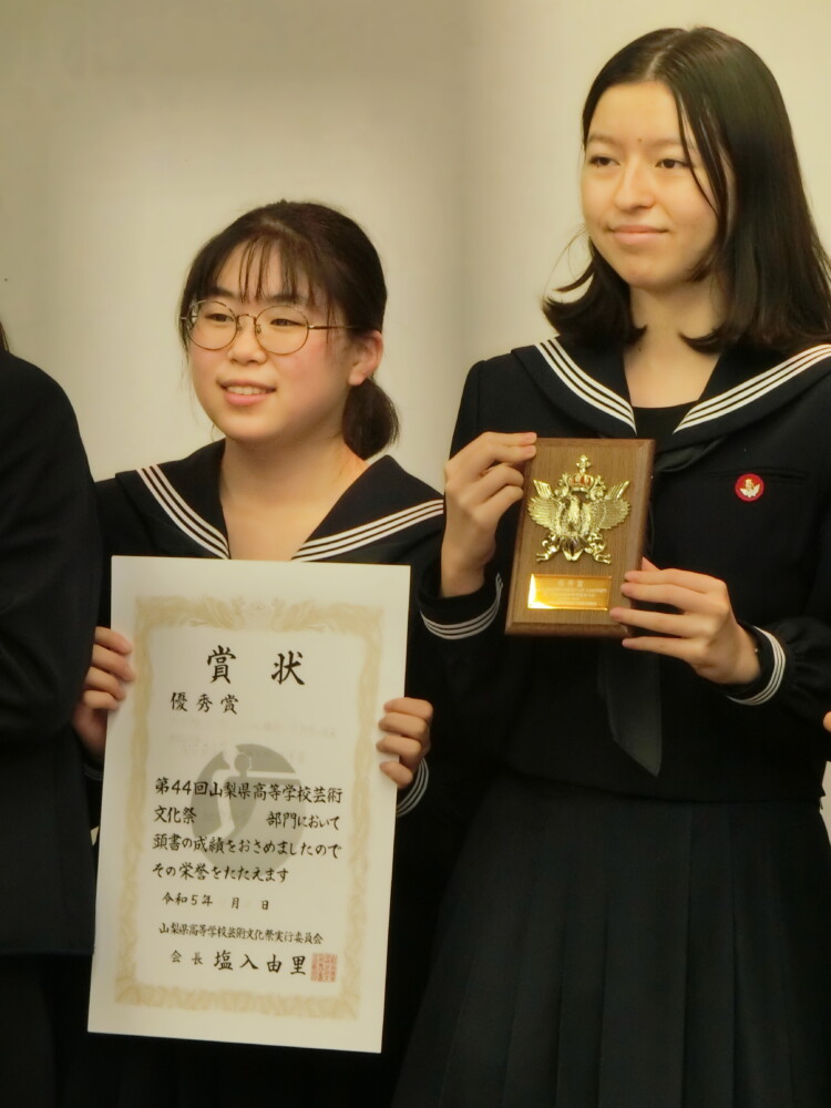 山梨県立都留高等学校 > わかつる日記 > Social Analysis履修者が第76回山梨県高等学校社会科学研究発表大会に参加してきました 2023年11月6日カテゴリー: わかつる日記 Social Analysis履修者が第76回山梨県高等学校社会科学研究発表大会に参加してきました 11月2日(土)Social Analysisを履修している2年次8名が甲府第一高校で開催された第76回山梨県高等学校社会科学研究発表大会(第44回山梨県高等学校芸術文化祭社会科学部門発表大会)に参加してきました。 参加した3班の発表テーマはそれぞれ『公立高校におけるエアコン設置の地域差の変化』『都留高生が描く心の中の変化』『大月駅北側空き地の土地利用の構想と大月市の未来』です。 授業を通して研究してきた成果を制限時間である8分間の中で最大限に発表できました。 『大月駅北側空き地の土地利用の構想と大月市の未来』班は、優良賞を頂きました。 今後の授業でさらに研究を深めていきたいと思います。