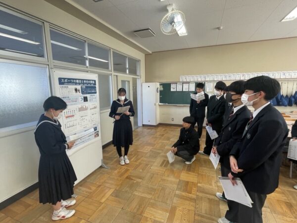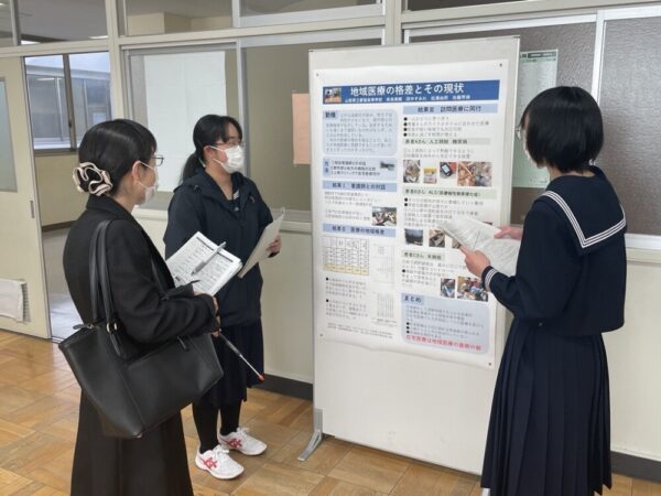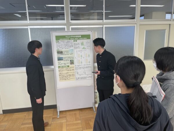 1月27日(土)韮崎高校にてサイエンスフェスタに参加してきました。自然科学に関する活動をポスター形式で発表し、他校の高校生と交流できる催しです。本校からは7班参加しました。「たくさんの質問があって、いい学びができました。他校のポスターのクオリティが高くて自分たちのポスターにも取り入れていきたいです。」(亀田友子さん)