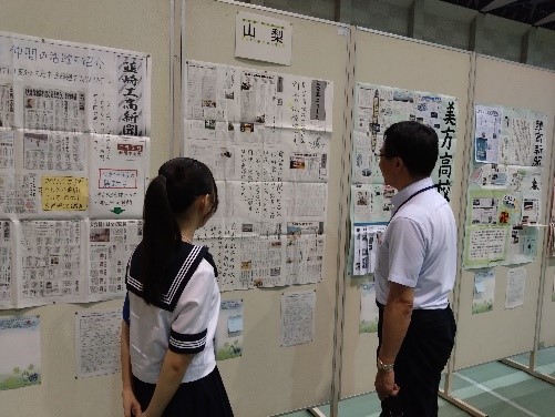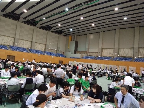 また、交流新聞つくりでは当日出会ったばかりの他県の高校生と班をつくり2日目の午後取材に出かけ、翌日の午前中までにB4版両面の手書きにの新聞を作る過酷なもの(2日目の夜は宿舎で作るので寝られない生徒もいるよう)ですが、無事、本校生徒も各班にて交流新聞を作成することができました。