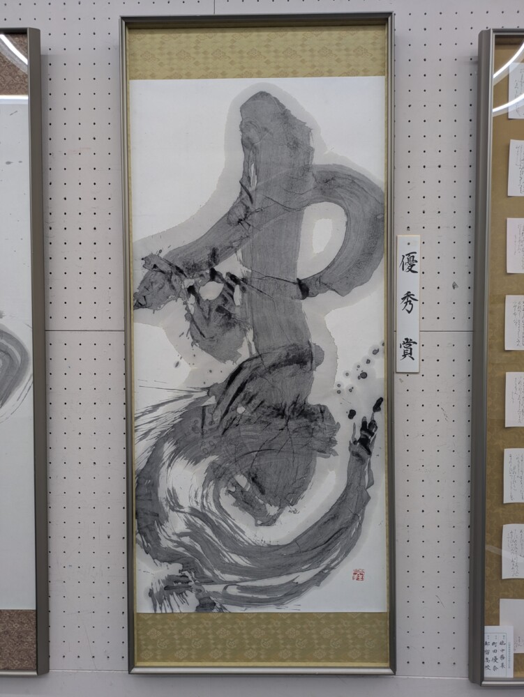 書道部の2年の小林さんが優秀賞、1年の狩野さんが奨励賞を受賞しました。