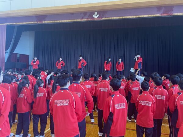 山梨県立都留高等学校 > わかつる日記 > 新入生オリエンテーションを行いました 2025年4月21日カテゴリー: わかつる日記 新入生オリエンテーションを行いました 4月18日(金)1年生対象の新入生オリエンテーションを実施しました。アイスブレイク、レクリエーション、校内オリエンテーリング、校歌練習など各クラス正副委員長を中心に生徒が企画から運営まで行いました。 アイスブレイクから水分補給が必要になるなど非常に盛り上がり、クラスの親睦、学年の親睦を深めることができ生徒たちにとって良い思い出になりました。 これからの1年生の活躍に乞うご期待‼︎校歌しっかり覚えましょう‼︎