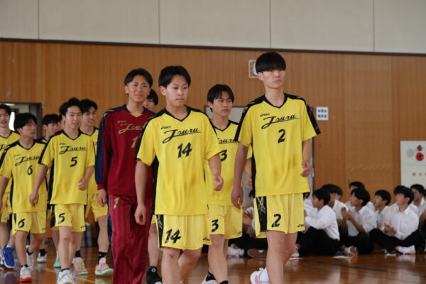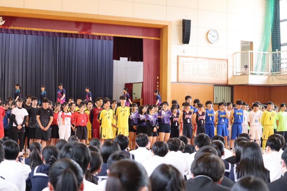 山梨県立都留高等学校 > わかつる日記 > 学校行事 > 総体壮行会を実施 2025年4月25日カテゴリー: 学校行事 わかつる日記 総体壮行会を実施 4月25日(金)に体育館で総体壮行会を行いました。 水泳、陸上、サッカー、男子バスケットボール、女子バスケットボール、女子バレーボール、男子ハンドボール、女子ハンドボール、男子テニス、女子テニス、男子バドミントン、女子バドミントン、柔道、剣道、ワンダーフォーゲル、卓球の各代表が総体に向けての抱負を述べました。応援団が運動部にエールを送りました。 選手入場 選手入場2 抱負を述べる 選手宣誓 校長先生が激励 応援団がエールを送る 校歌、応援歌を歌う