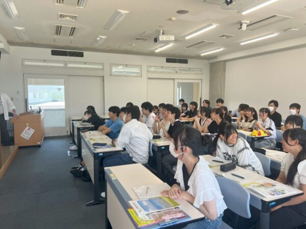 午前中は公立諏訪東京理科大にて菊地輝行准教授よる模擬授業【クロステイメントで挑む苦手克服!】を受講しました。「好きなもの×嫌いなもの」の掛け合わせ例をきっかけに課題研究へのアプローチの仕方や先生の研究内容、生徒にわかりやすくお話をしていただきました。またご自身の経歴をお話ししてくださり生徒は刺激を受けたたようです。公立諏訪東京理科大の皆様、ありがとうございました。