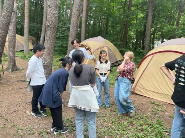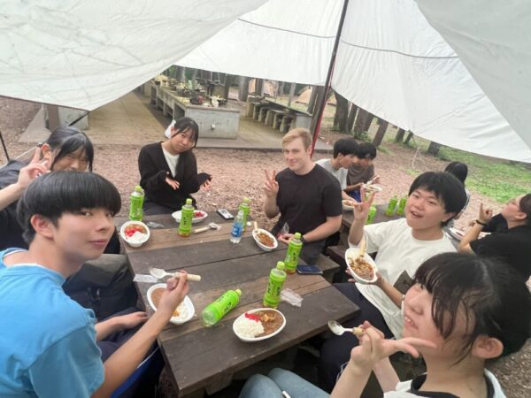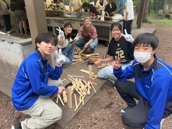 山梨県立都留高等学校 > わかつる日記 > 学校行事 > 2年次SAキャンプ① 2025年7月28日カテゴリー: 学校行事 わかつる日記 2年次SAキャンプ① 7月23~24日に2年次のSAキャンプが実施されました。 まずは1日目23日のご報告! 午前中は公立諏訪東京理科大にて菊地輝行准教授よる模擬授業【クロステイメントで挑む苦手克服!】を受講しました。「好きなもの×嫌いなもの」の掛け合わせ例をきっかけに課題研究へのアプローチの仕方や先生の研究内容、生徒にわかりやすくお話をしていただきました。またご自身の経歴をお話ししてくださり生徒は刺激を受けたたようです。公立諏訪東京理科大の皆様、ありがとうございました。 学食でのランチ後に宿泊先の県立八ヶ岳少年自然の家へ移動し、本校ALTジョナサン先生と県内のALT6名をお迎えして野外活動のスタートです。 グループごとALTと会話をしながら木のスプーンをつくり、野外炊事でカレーを作りました。嫌いな野菜は小さく、水分多め・少なめ、班ごとに出来栄えは様々。ご飯も炊き加減がちょうどよく大成功!食材も残ることなくペロリと食べきりました。 キャンプファイヤーではジョナサン先生企画でクイズとマイムマイム。火を囲みながら和やかな楽しいひと時を過ごしました。 ALTとはここでお別れして生徒はテント泊。ほとんどの生徒が初めての経験でキャッキャしている声が響いていましたが、夜が深くなると静かになりグッスリと眠れたようです。 生徒の感想です ・ALTの先生とのsmall talk は自分が興味のあることについて話をして新しく知ることが多かったのでとても印象に残り実りある時間になった ・何度か聞き返して違う言葉で説明してもらいやさしかったですが、私はそこが特に悔しかったです。この夏休みの英語の勉強のモチベーションにもなってよかったです ALTの先生方、ありがとうございました。 Thank you so much.