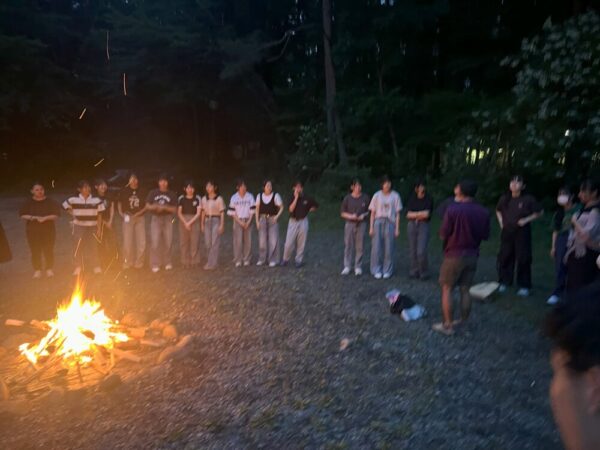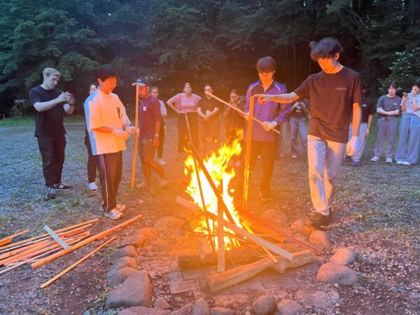 キャンプファイヤーではジョナサン先生企画でクイズとマイムマイム。火を囲みながら和やかな楽しいひと時を過ごしました。