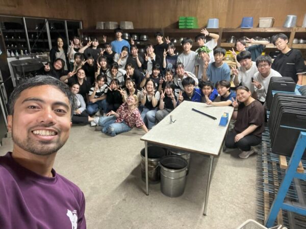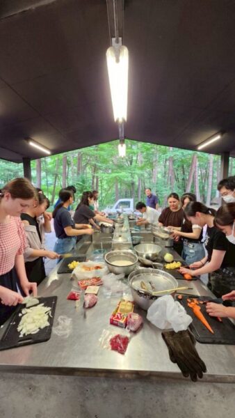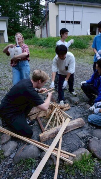 学食でのランチ後に宿泊先の県立八ヶ岳少年自然の家へ移動し、本校ALTジョナサン先生と県内のALT6名をお迎えして野外活動のスタートです。