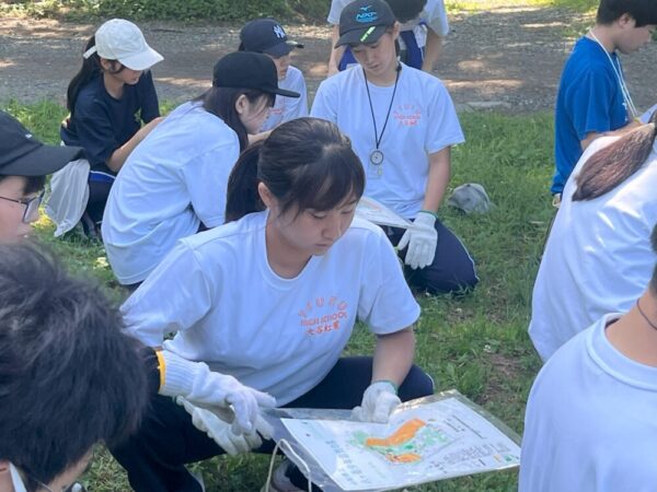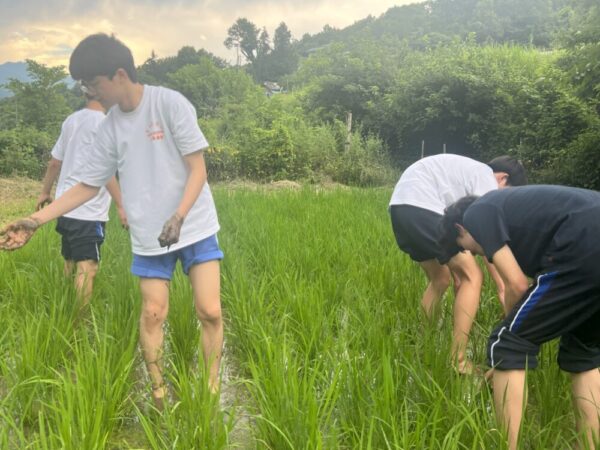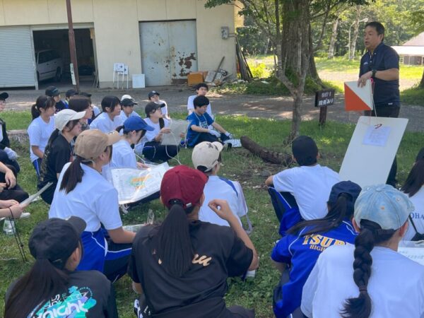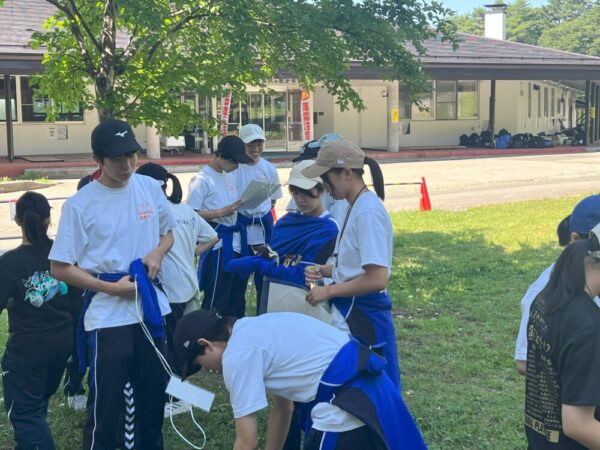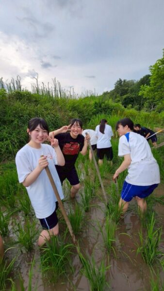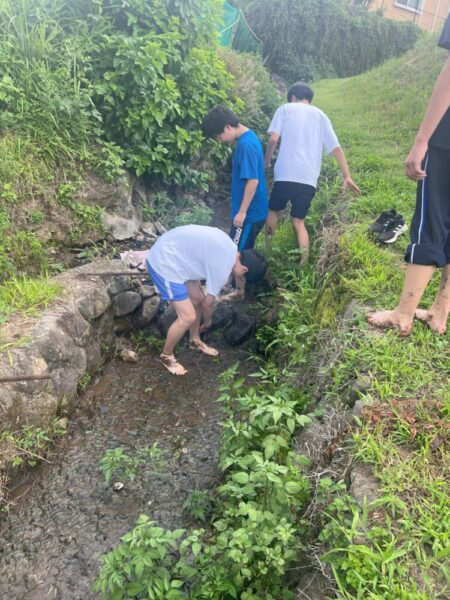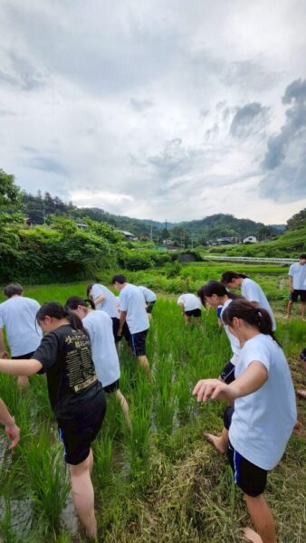 山梨県立都留高等学校 > わかつる日記 > 学校行事 > 2年次SAキャンプ② 2025年7月28日カテゴリー: 学校行事 わかつる日記 2年次SAキャンプ② 2日目の24日の様子です。 この日は夏休みらしくラジオ体操からスタートです。ラジオ体操第1は完璧!第2になると大人もしどろもどろでした。 朝食後は清掃点検を受けて、チェックポイントを回り得点を競うオリエンテーリング。 コンパスの使い方を教わり、各班で作戦立ててから出発です。東京ドーム10個分の敷地を駆け回り、汗だくでしたがとても清々しい顔をして帰ってきました。 午後はBeyond自然塾で田んぼの雑草とりをお手伝いしてきました。田んぼに入るのが初めての生徒が多く、最初は戸惑っていましたが、足を突っ込んでしまえばどんどんと進んで行きました。道具を使ってみたり、イネを植えてみたり、虫を探してみたり、草取りしつつも楽しみ方も様々でした。最後はお決まりの泥んこ合戦。 沢で足を洗うのも楽しかったようです。代表の室田さんのお話は胸打つものがあったようです。 各方面にご協力いただきながら無事にSAキャンプを終えることができました。 生徒の感想です ・オリエンテーリングでは都留高校に入学してからのbest memoryになった。まず楽しかった。途中で蛇などの動物を見ることができたり、沼地に足が落ちたりなど、あれほどの自然に立ち入ったことはめったになかったため新鮮だった。そして丘からの景色や森の中の探検の楽しさを仲間と共有できたことが本当に良かった。それが高校の良さの一つだと思う。 ・自然塾の先生の話の中に自分の思ったことを伝えてみたり、やりたいことを素直に言ったりするなどコミュニケーションによる対話を大切にしてほしいというものがあり、実際の経験談も交えて伝えていただきとても納得できたし、自分は思っていることを伝えることは苦手なので少し考え方を変えることができた。