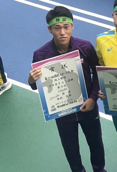 陸上部3年の西村君が滋賀国スポの少年男子A三段跳6位