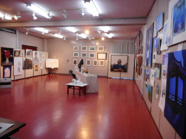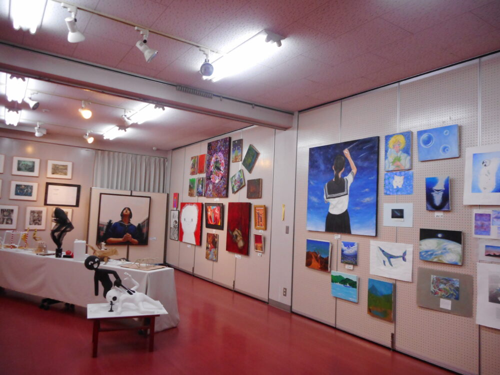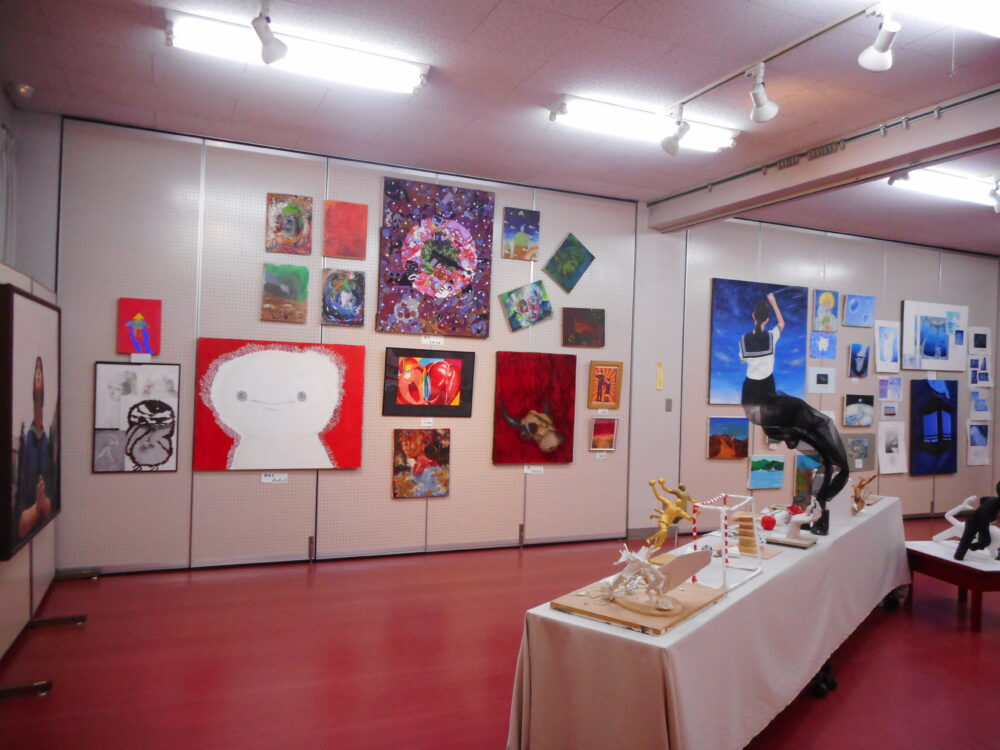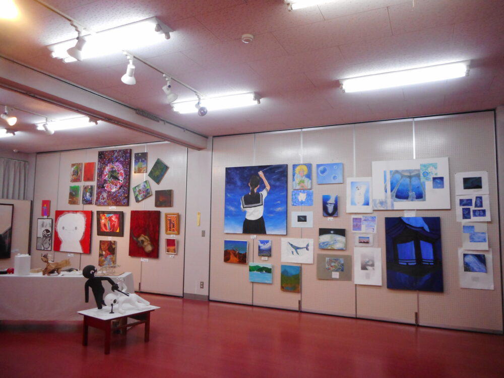 美術部制作や授業で制作したものなど美術室にあった作品をつるたんや美術部や授業で選択した三年生が展示しました。