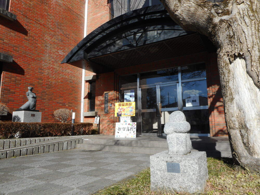 都留高探究プロジェクト「美術館を作ろう」では、校内にある美術品を展示室にならべて見つめなおす企画を考えました。